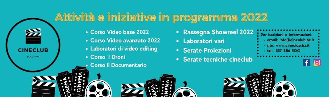 Per ulteriori informazioni: info@cineclub.bz.it - Cell. 337 886300